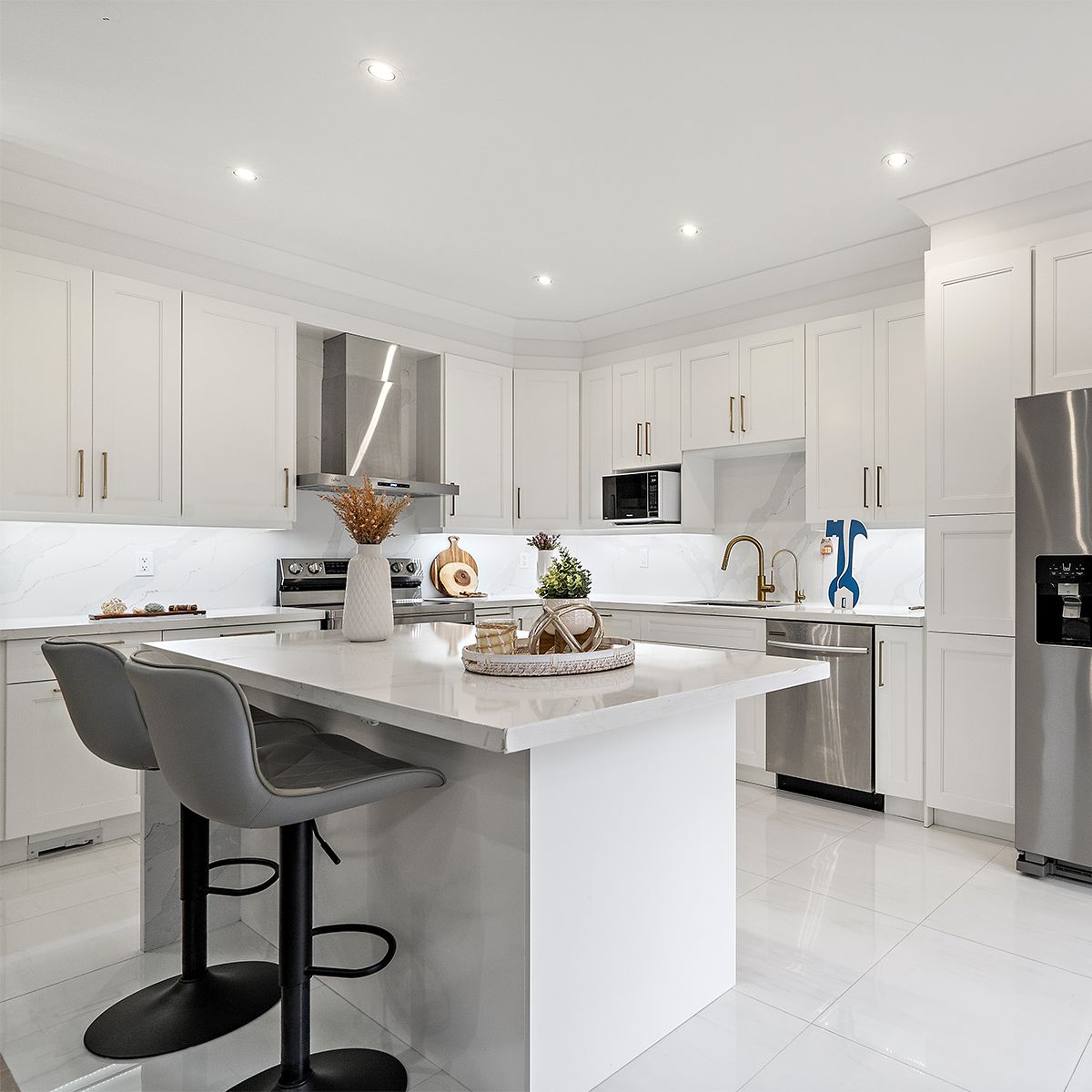 An expansive kitchen renovation featuring open layouts, state-of-the-art appliances, and elegant cabinetry to optimize space.